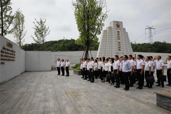 在莊嚴(yán)肅穆的歸園烈士紀(jì)念碑下,科干班全體學(xué)員向革命烈士紀(jì)念碑行鞠躬禮,向革命烈士致以深深的敬意,并重溫了入黨誓詞。隨后,與烈士遺屬一同參觀了教育基地。該基地分為A、B兩館,其中A館展示了建黨初期與大革命、土地革命、抗日戰(zhàn)爭、解放戰(zhàn)爭等時期黨領(lǐng)導(dǎo)下的隱蔽戰(zhàn)線斗爭,以及各時期在湖南、衡陽,中國共產(chǎn)黨的先驅(qū)與隱蔽戰(zhàn)線工作者投身革命事業(yè)舍身忘死、力挽狂瀾的事跡,還展示新時代下國家安全的“攻與防”。B館展示了犧牲在隱蔽戰(zhàn)線上的衡陽“一門四忠烈”段沄、段復(fù)、段徽楷和謝小球四位革命烈士一腔熱血、以身許國的英勇事跡。館內(nèi)翔實(shí)的資料、生動的圖文、珍貴的展品,讓大家不時停下腳步仔細(xì)觀看,認(rèn)真聆聽講解。