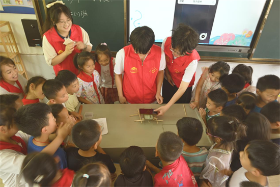 志愿者通過簡(jiǎn)易實(shí)驗(yàn)介紹橋梁知識(shí)。