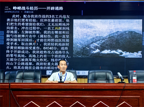 連日來,在隆回縣思源實(shí)驗(yàn)學(xué)校、九龍學(xué)校、萬和實(shí)驗(yàn)學(xué)校,一場(chǎng)場(chǎng)特殊的參戰(zhàn)經(jīng)歷讓紅色記憶煥發(fā)新生。精神矍鑠的老兵尹華炳,用他鏗鏘有力的聲音,將成百上千的師生帶回到硝煙彌漫的中越邊境戰(zhàn)場(chǎng),還原了當(dāng)年發(fā)生在460高地的激烈戰(zhàn)斗場(chǎng)景。作為戰(zhàn)斗的親歷者,他講述的不是書本上的文字,而是刻骨銘心的生死記憶。
