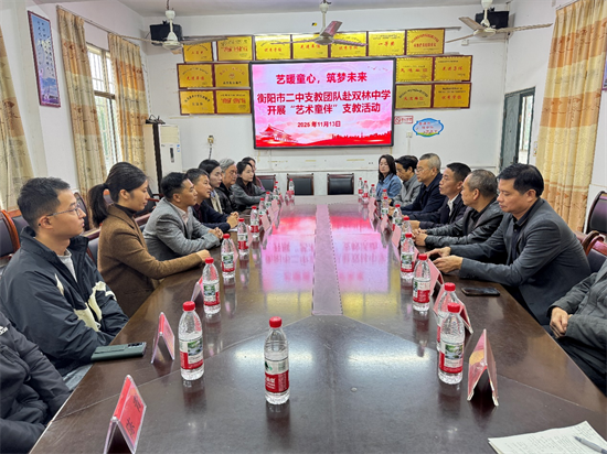 見面會在簡潔溫馨的會議室召開。雙林中學(xué)副校長顏發(fā)乃對衡陽市二中支教團隊的到來表示熱烈歡迎,并全面介紹了該校體育藝術(shù)教育的豐碩成果,同時坦誠分享了當前發(fā)展面臨的師資困境。隨后,彭劍鋒委員作匯報,回顧了兩校過往合作的深厚淵源與亮眼成績,并從四大維度明確了后續(xù)幫扶重點:筑牢藝術(shù)素養(yǎng)教育特色陣地、強化體藝教師專業(yè)成長賦能、豐富留守兒童藝術(shù)關(guān)愛活動、健全長效合作溝通機制,為支教工作劃定了清晰方向。