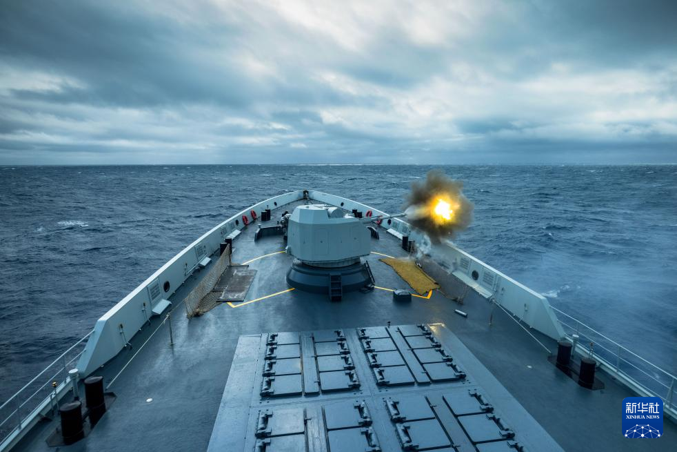 3月29日,在中泰“藍(lán)色突擊-2025”海軍聯(lián)合訓(xùn)練中,中方參訓(xùn)艦艇許昌艦在聯(lián)合對海打擊科目中組織主炮射擊訓(xùn)練。新華社發(fā)(賈曉鵬 攝)