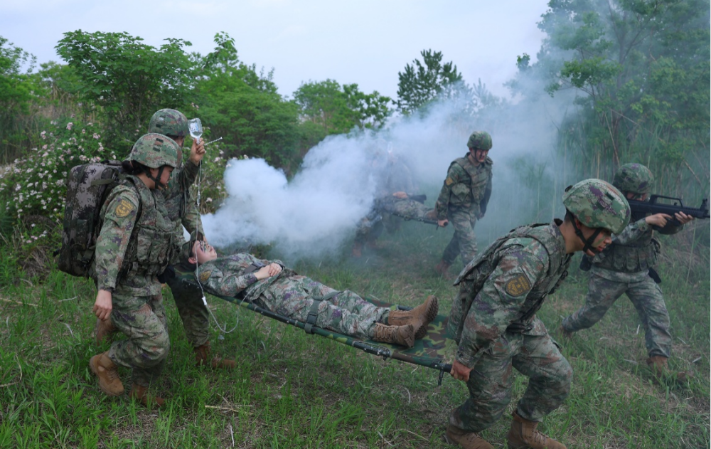 聯(lián)勤保障部隊(duì)第901醫(yī)院組織文職隊(duì)伍深入山林地域,開(kāi)展實(shí)戰(zhàn)化崗位練兵,緊盯護(hù)理人員“走、打、搜、救、藏”等戰(zhàn)場(chǎng)急需管用的衛(wèi)勤保障技能,錘煉快速搜救、“傷員”轉(zhuǎn)運(yùn)、火線救治能力。(郝東紅、阮敏婕)