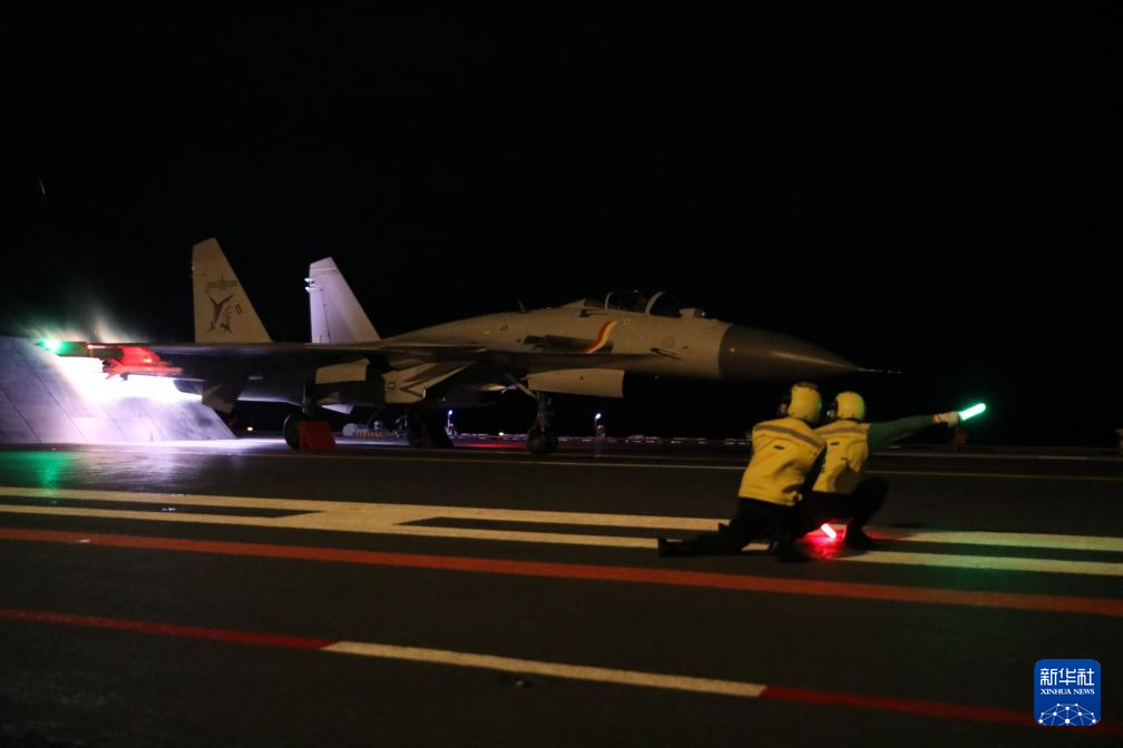 6月上旬,海軍航母編隊(duì)在西太平洋海域開展訓(xùn)練。圖為艦載戰(zhàn)斗機(jī)進(jìn)行夜間起飛。新華社發(fā)(王健 攝)