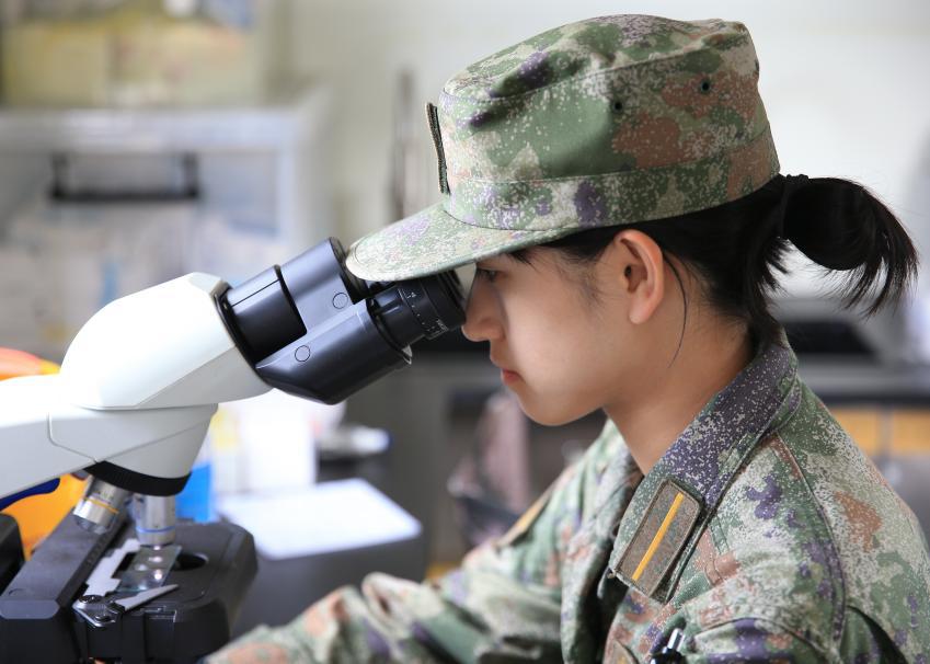 學(xué)員在野戰(zhàn)生化檢驗(yàn)車(chē)上完成樣本檢驗(yàn)。湯燕妮 攝
