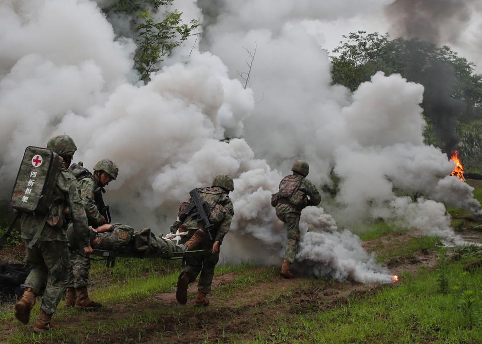 “前線(xiàn)”交戰(zhàn)正酣,“傷員”不斷增多,“收到上級(jí)來(lái)電,前方有‘傷員’滯留!”接到指揮組下達(dá)的最新命令,“準(zhǔn)軍醫(yī)”們?cè)俅伪成媳衬遥粋€(gè)個(gè)身影迅速?zèng)_入硝煙,一起奔向前方的戰(zhàn)場(chǎng)。(王俊康、李鑫、羅楊)
