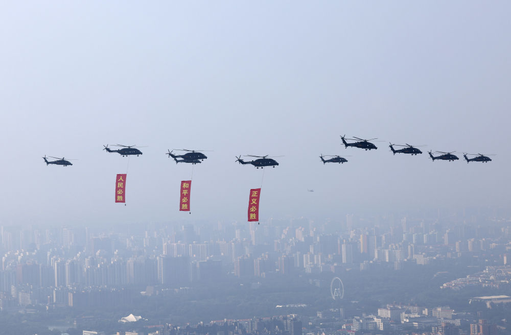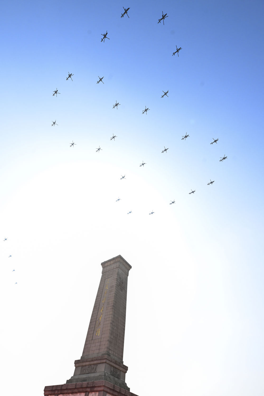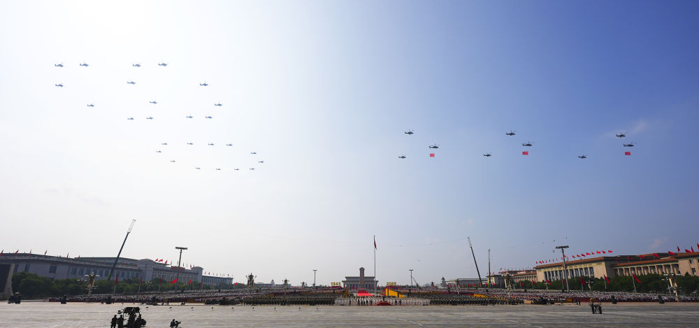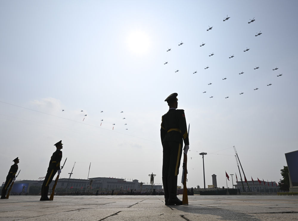 這是空中護旗梯隊飛過北京上空