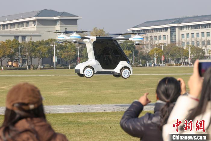 1月1日,江蘇南京,由東南大學(xué)科研團(tuán)隊自主研發(fā)的國內(nèi)首輛分布式電驅(qū)動飛行汽車“東大·鯤鵬1號”驚艷亮相。據(jù)了解,該飛行汽車技術(shù)源于東南大學(xué)機(jī)械工程學(xué)院車輛工程系與江蘇省智能電動運載裝備工程研究中心,集多項創(chuàng)新技術(shù)于一身。圖為“東大·鯤鵬1號”飛行汽車飛行。中新社記者 泱波 攝