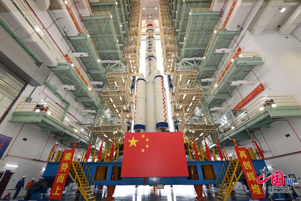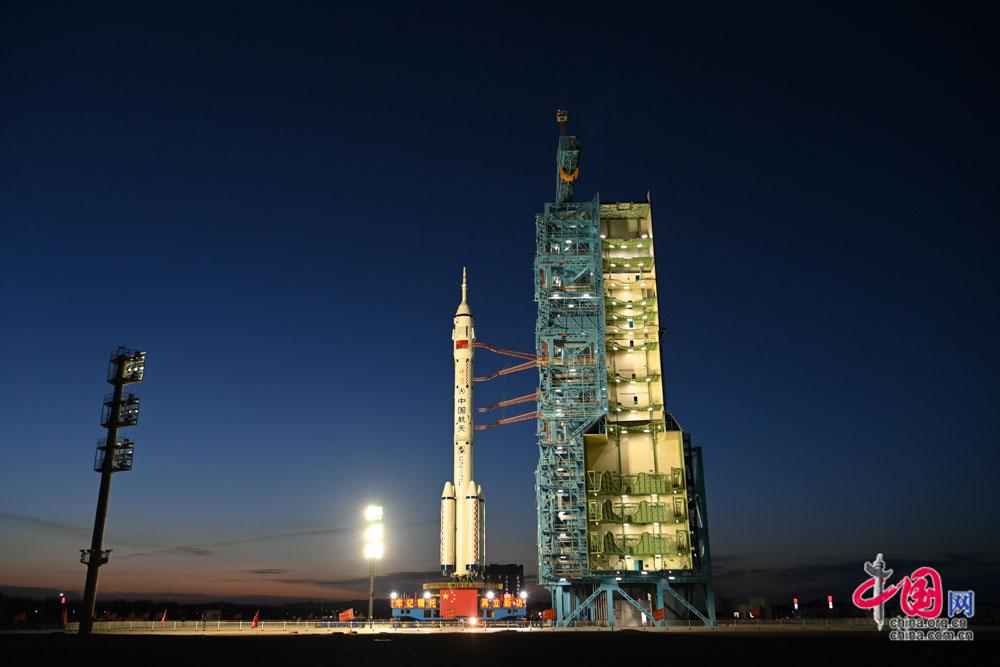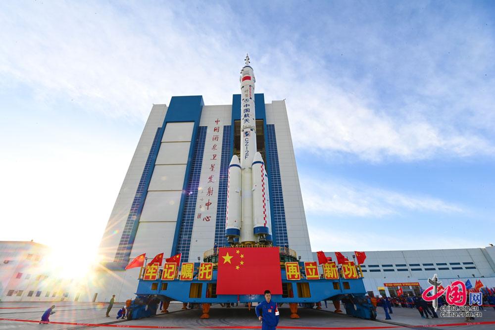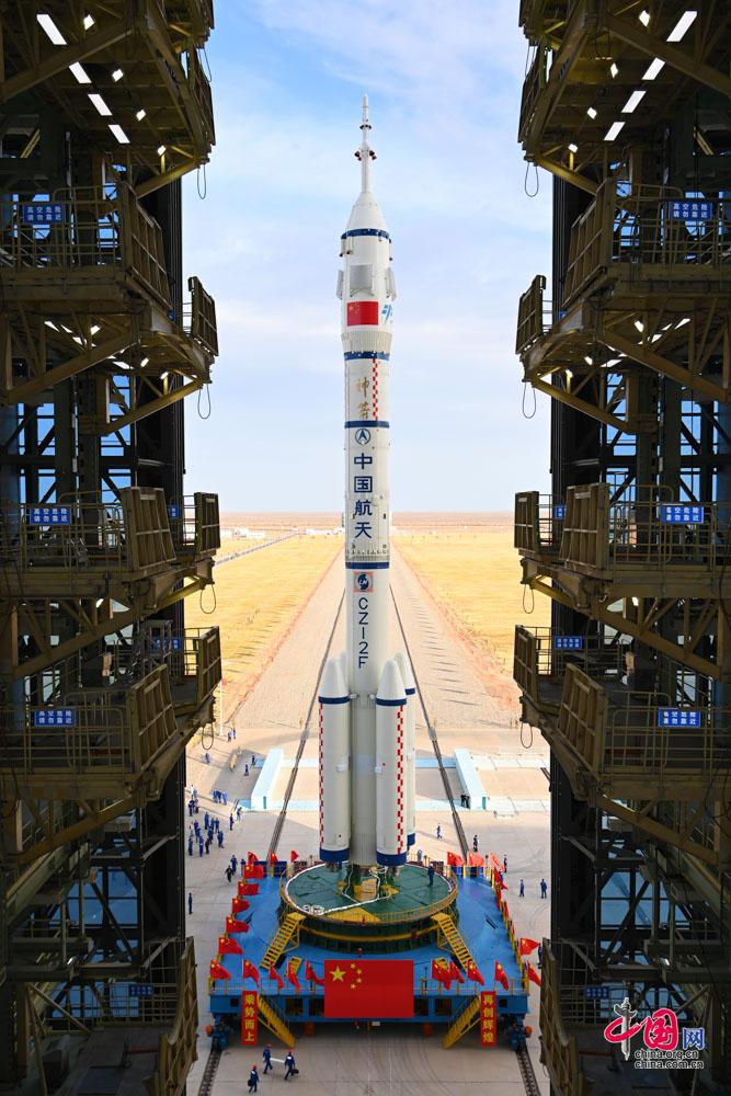 2025年4月16日,神舟二十號(hào)載人飛船與長(zhǎng)征二號(hào)F遙二十運(yùn)載火箭組合體已轉(zhuǎn)運(yùn)至發(fā)射區(qū)。中國(guó)網(wǎng)發(fā) 汪江波 攝影