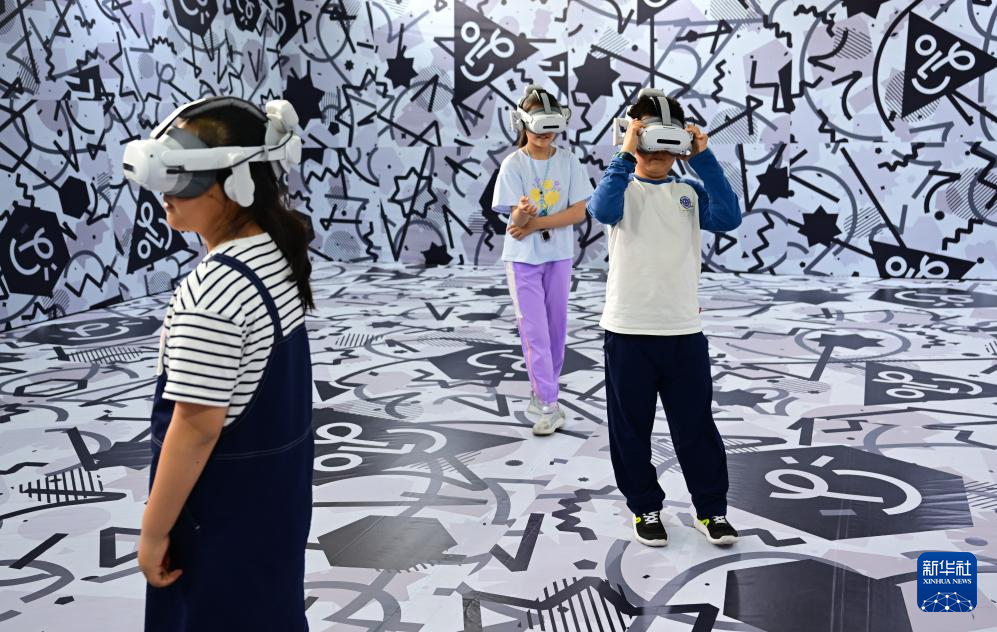 4月26日,小朋友們在第三屆中國(安徽)科技創(chuàng)新成果轉(zhuǎn)化交易會上體驗(yàn)VR設(shè)備。