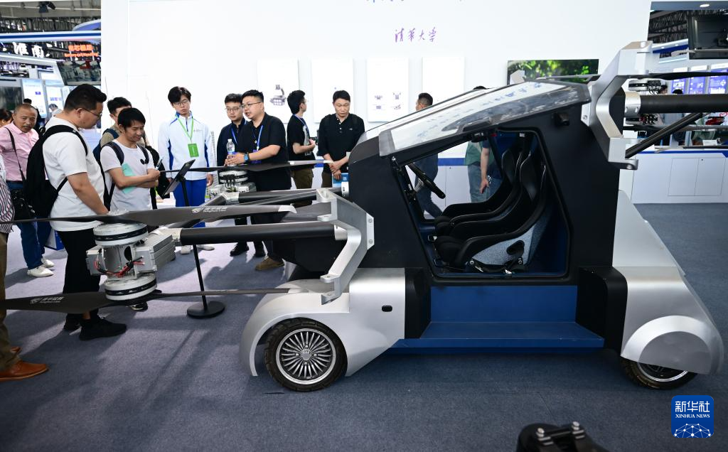 4月26日,觀眾在第三屆中國(安徽)科技創(chuàng)新成果轉(zhuǎn)化交易會上參觀一款飛行汽車。