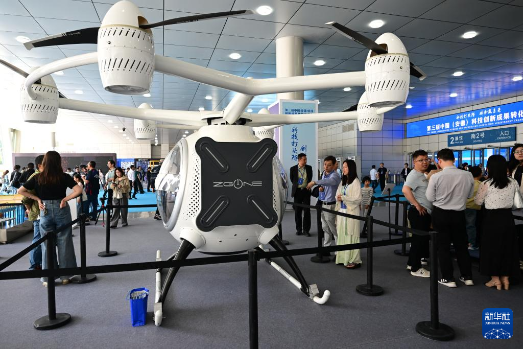 4月26日,觀眾在第三屆中國(安徽)科技創(chuàng)新成果轉(zhuǎn)化交易會上參觀一款飛行器。
