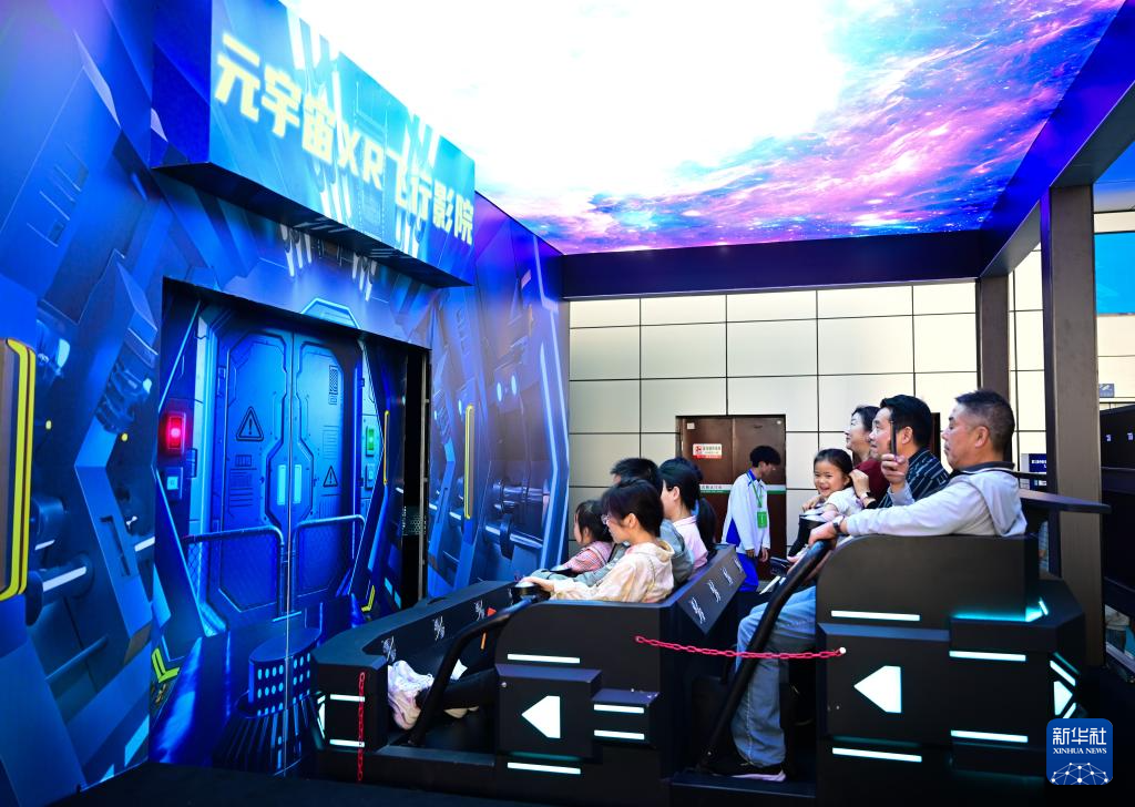 4月26日,觀眾在第三屆中國(安徽)科技創(chuàng)新成果轉(zhuǎn)化交易會上體驗(yàn)元宇宙XR飛行影院。