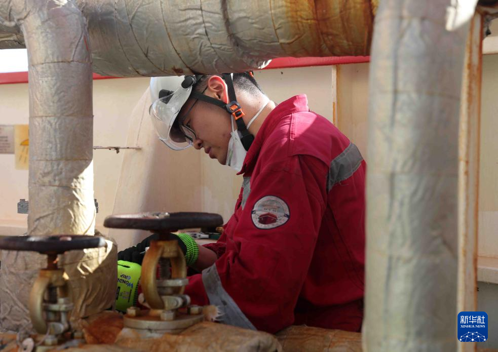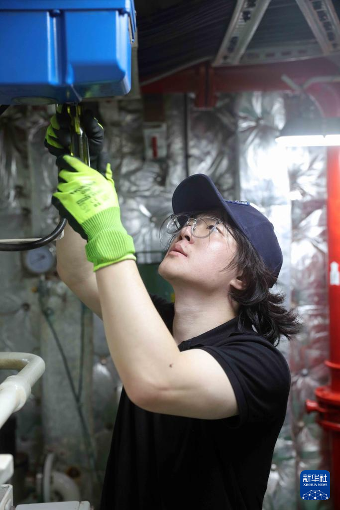 5月2日,“雪龍2”號三管輪陳星宇在機(jī)艙制淡間內(nèi)維護(hù)海水淡化相關(guān)設(shè)備。