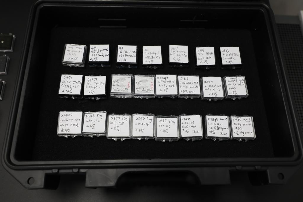北京高壓科學研究中心的實驗室里,已完成實驗的破碎金剛石樣品被編上號、貼上標簽,保存起來。圖為打開盒蓋后已完成實驗的部分破碎金剛石樣品。(受訪者供圖)