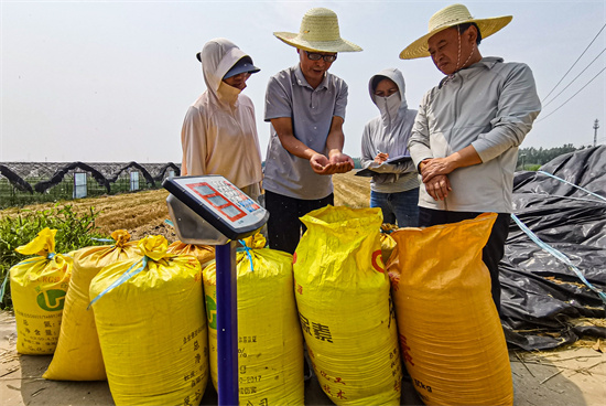 2025年5月27日,安徽省合肥市廬江縣農(nóng)業(yè)農(nóng)村局等單位組織的測產(chǎn)驗收專家組,走進位于該縣臺灣農(nóng)民創(chuàng)業(yè)園的孔靜心谷物家庭農(nóng)場小麥綠色豐產(chǎn)增效示范方,對小麥進行實收測產(chǎn)。