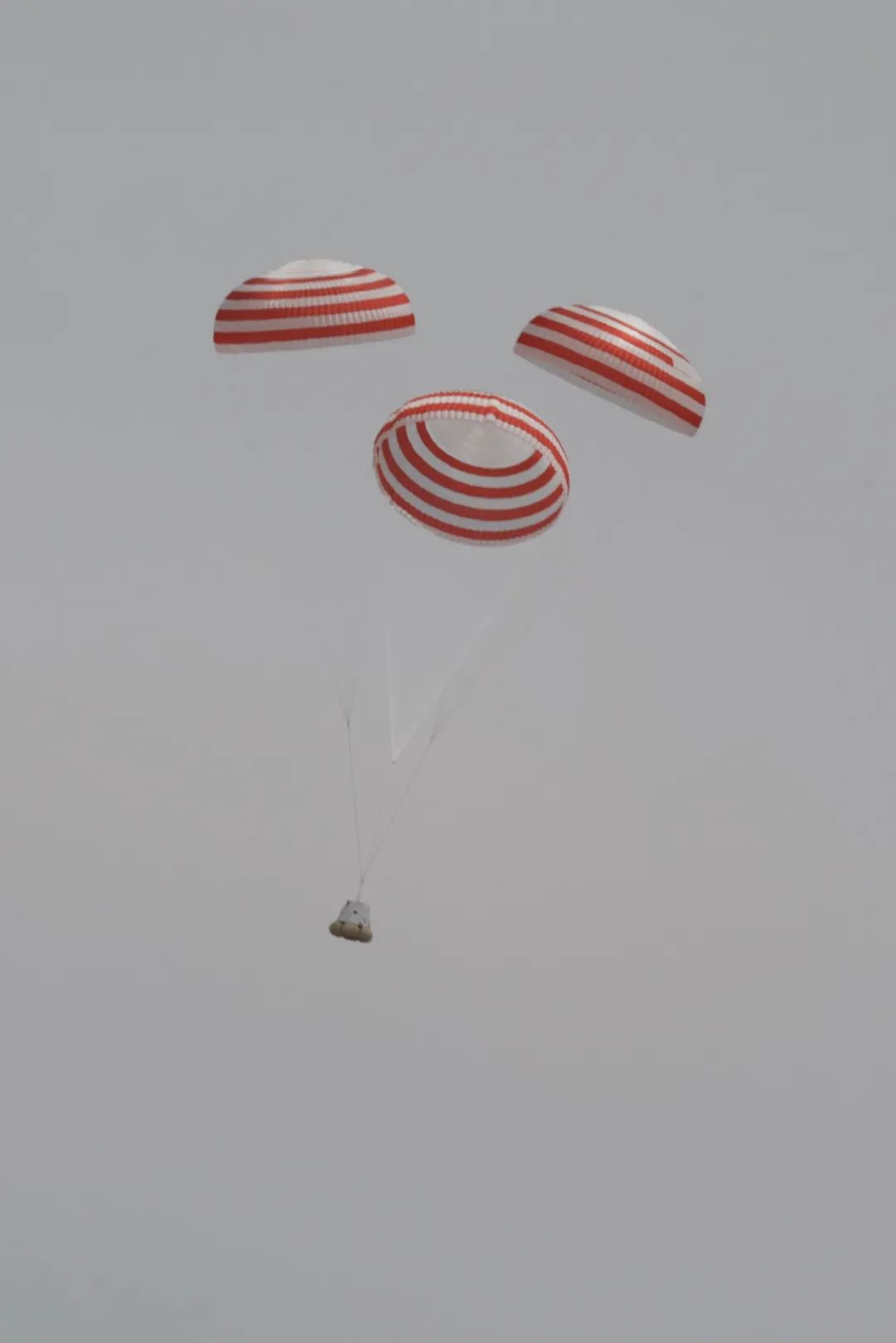 12時(shí)30分,下達(dá)點(diǎn)火指令,夢(mèng)舟載人飛船逃逸發(fā)動(dòng)機(jī)成功點(diǎn)火,船塔組合體在固體發(fā)動(dòng)機(jī)推動(dòng)下騰空而起,約20秒后達(dá)到預(yù)定高度,返回艙與逃逸塔實(shí)現(xiàn)安全分離,降落傘順利展開。12時(shí)32分,返回艙使用氣囊緩沖方式安全著陸于試驗(yàn)落區(qū)預(yù)定區(qū)域,試驗(yàn)取得圓滿成功。