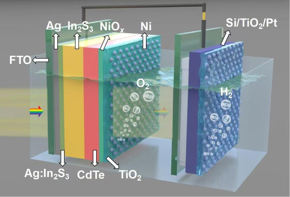 圖為無(wú)偏壓太陽(yáng)能水分解系統(tǒng)示意圖。新華社發(fā)