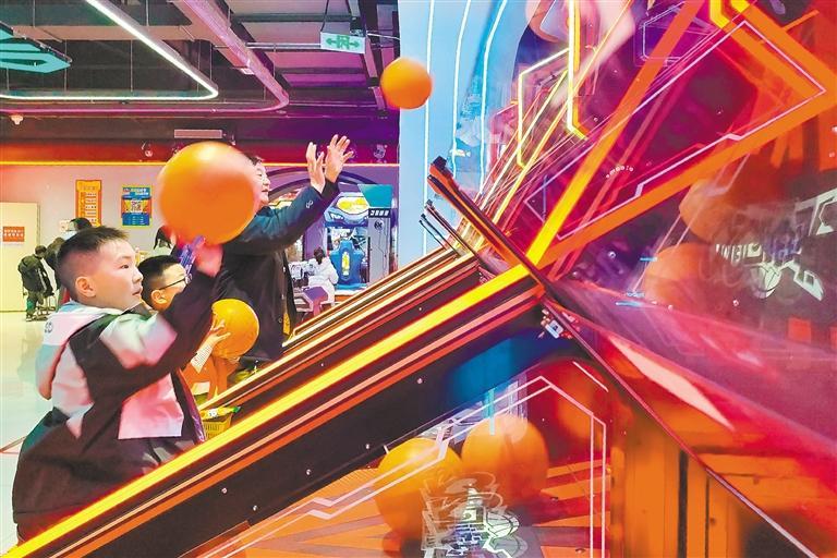 1月29日,市民在湖北省孝感市云夢(mèng)縣電玩城玩極速投球游戲。胡學(xué)軍攝(中經(jīng)視覺)