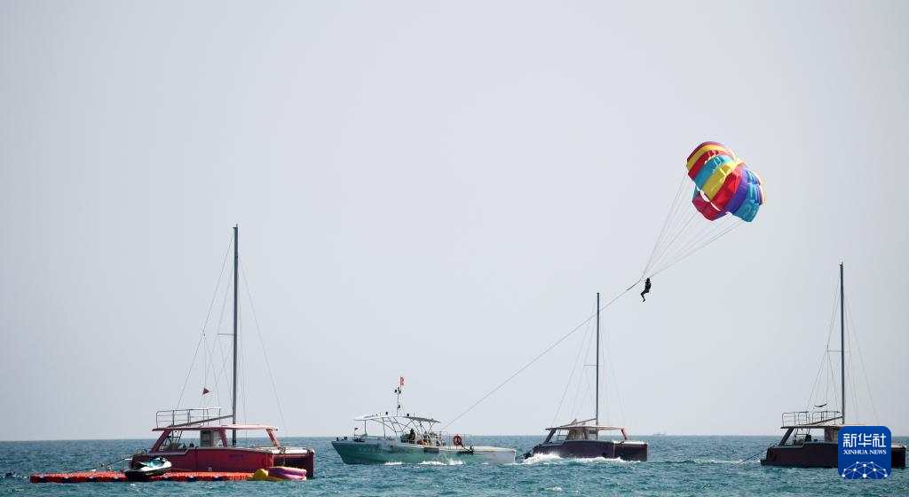 2月6日,游客在三亞市大東海景區(qū)體驗海上項目。