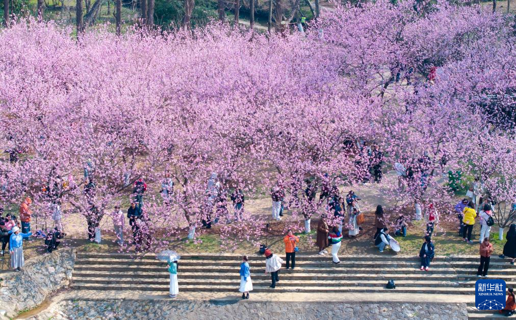 3月4日,游客在湖北省宣恩縣珠山鎮(zhèn)賞花游玩(無(wú)人機(jī)照片)。