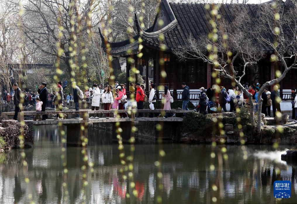 3月6日,游客在江蘇蘇州拙政園游玩。