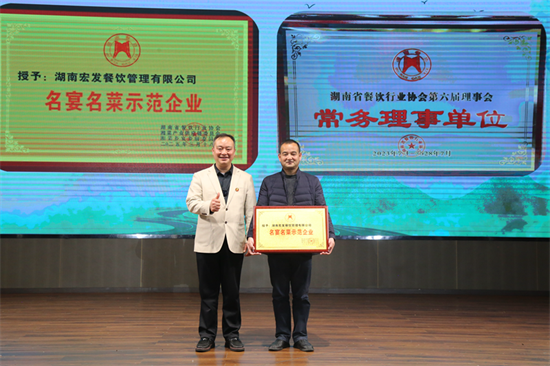 會上,湖南省餐飲行業(yè)協(xié)會為湖南宏發(fā)餐飲管理有限公司頒發(fā)“名宴名菜示范企業(yè)”和省餐協(xié)常務(wù)理事單位牌匾。宏發(fā)集團(tuán)董事長劉學(xué)中表示:宏發(fā)餐飲管理有限公司作為湖南本土餐飲企業(yè),始終致力于傳承和創(chuàng)新湘菜文化。借此次“中國湘菜萬里行”活動,再接再厲,為推動湘菜走向全國、助力旅發(fā)盛會貢獻(xiàn)“宏發(fā)”力量。