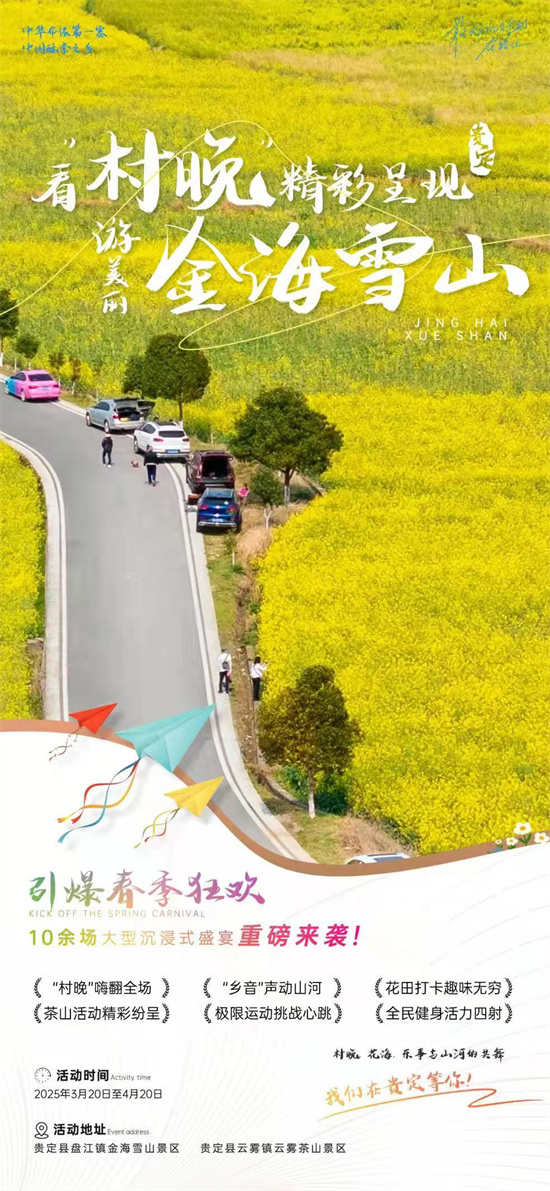 3月20日,貴定縣2025年全國春季“村晚”將在金海雪山景區(qū)拉開帷幕,黔南州2025“四季黔南•春游芳草地”全場景文體旅系列活動和貴定縣2025“春游貴定•賞花品茗”旅游歡樂季系列活動將陸續(xù)精彩呈現(xiàn),誠邀廣大游客共赴這場浪漫的“春日之約”。