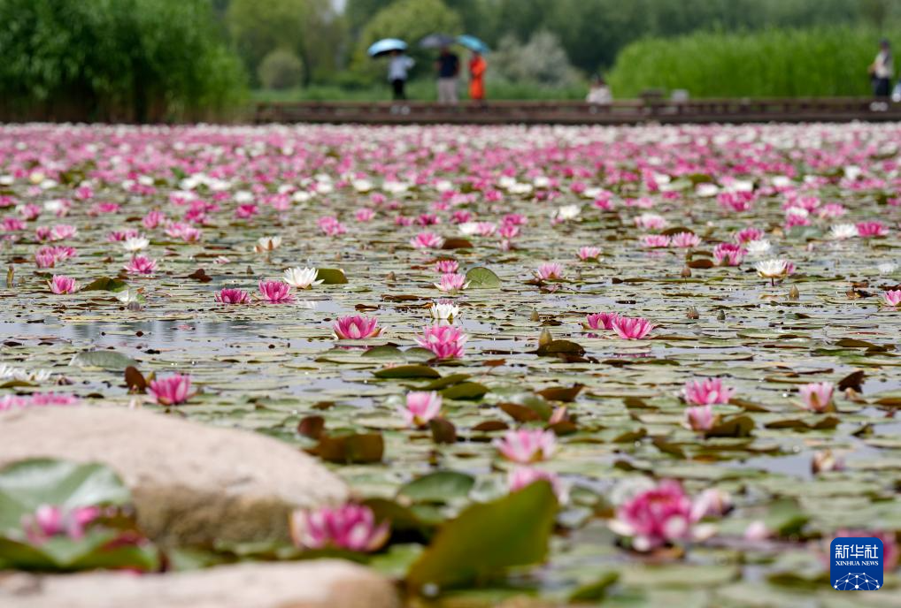端午小長(zhǎng)假期間,在位于寧夏銀川市的中國(guó)花卉博覽園湖面,睡蓮競(jìng)相開(kāi)放,吸引游客前來(lái)觀賞、拍照。