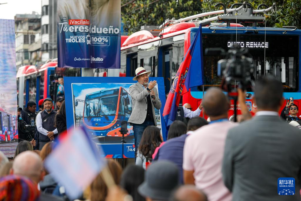 3月31日,在厄瓜多爾首都基多,基多市長帕貝爾·穆尼奧斯在投運儀式上發(fā)言。