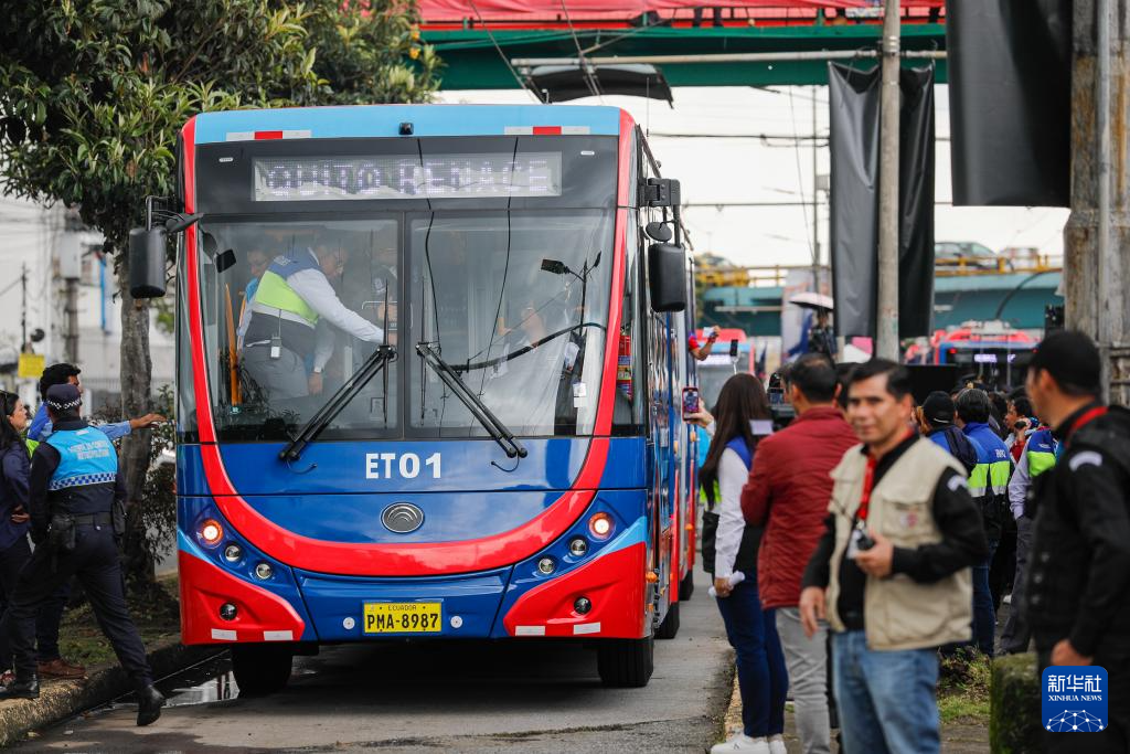 3月31日,在厄瓜多爾首都基多,市民參觀宇通雙源無軌電車。