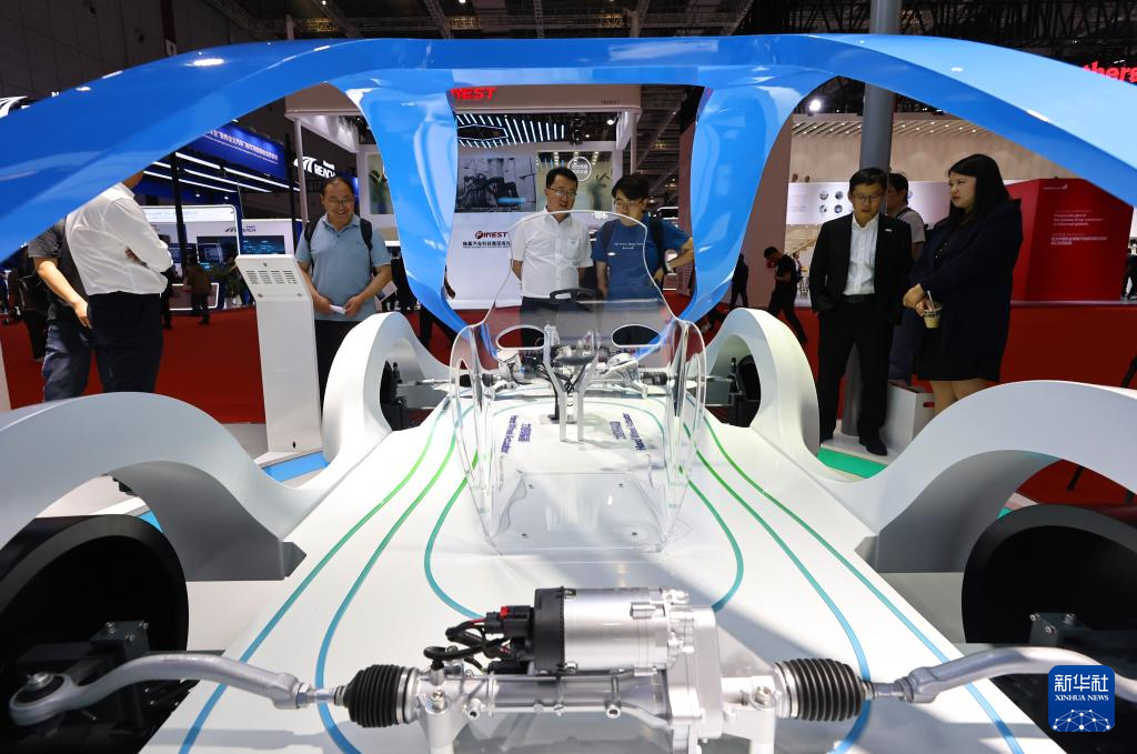 4月25日,觀眾參觀一款線控轉(zhuǎn)向系統(tǒng)模型。