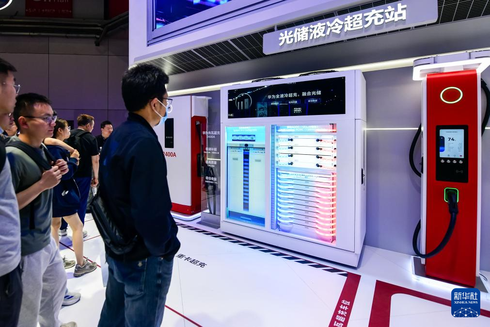 4月25日,觀眾參觀華為光儲(chǔ)液冷超充站。