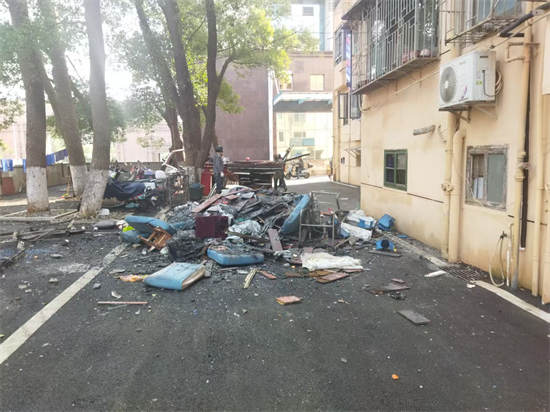發(fā)生火災(zāi)的是該校東園教工宿舍6棟3單元3樓一套住房,當(dāng)天上午,中國新報記者趕到現(xiàn)場,發(fā)現(xiàn)起火的房屋一片狼藉,學(xué)校天創(chuàng)物業(yè)的多名女保潔人員正在房屋內(nèi)清潔衛(wèi)生,樓下,一輛三輪車正在幫主人清運(yùn)焚燒的木地板,一臺立式空調(diào)和多臺外機(jī)被燒壞。