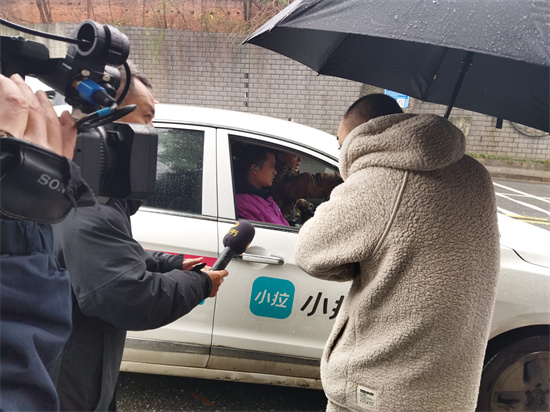 電視臺記者在采訪寶馬車司機(jī)