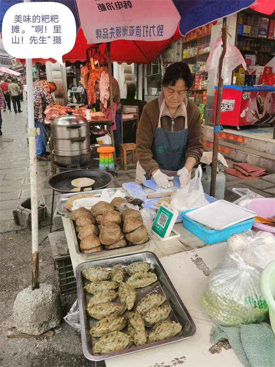 “?。±锷?!先生”看見(jiàn)愛(ài)吃的苦蕎粑,就連中國(guó)著名的沙土羊肉粉都不想吃了,就接連干了幾個(gè),后來(lái),又干了他自己兒時(shí)最愛(ài)吃的油炸糯米粑后,“??!里山!先生”在微信朋友圈發(fā)出了:“哈哈哈,太安逸咯,真是開(kāi)心。”