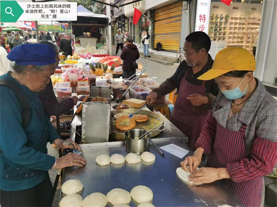 “啊!里山!先生”告訴我說(shuō):沙土街上的油炸糯米粑最好吃,比金沙、畢節(jié)、貴陽(yáng)的都好吃,因?yàn)橛驼ㄅ疵佐卫锩嬗欣藜?xì)的巴山小豆,你可別小瞧這賣油炸糯米粑的,他家兩口子一輩子就靠賣這油炸糯米粑,居然就在沙土街上修了兩棟房子,面積有四五百個(gè)平方。