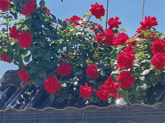 沿路以傳統(tǒng)石板相砌的“共享花箱”,取代了隨意丟棄的雜物,種上各色薔薇,鮮艷綻放,與房屋墻角相連,如裙擺搖曳。