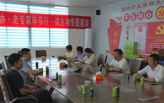 貴州萬益康微生物科技有限公司董事長吳道全、總工程師劉富金陪同陳海江、李勇考察了土著益生菌研發(fā)中心、實驗室、生產(chǎn)車間,與研發(fā)人員一起,對土著微生物分離培育、專利申報、博士創(chuàng)新工作站工作啟動等進行了深入探討,并就公司的發(fā)展方向、規(guī)劃布局、市場拓展、研發(fā)核心、企業(yè)文化等問題,進行了充分交流。