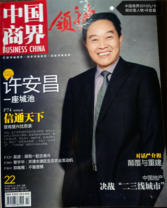 后來,從許大哥手機(jī)里的資料上看,原來他說的不是重慶的《商界》雜志,而是北京的《中國商界》雜志,而這《中國商界》雜志,就是我以前干了九年的老東家——中國商報(bào)社,許大哥做的是《中國商界》雜志2010年9-10期合刊的封面人物。