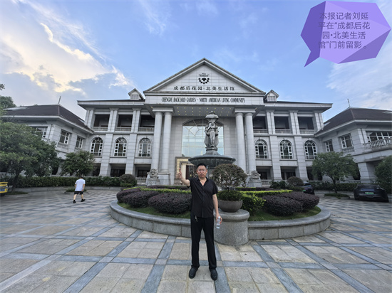 “我來幫你們拍……”這時(shí),從“成都后花園•北美生活館”內(nèi)跑過來一位熱情的美女,很快就給我倆來了幾張。再看這位美女,那可是婷婷玉立,人中龍鳳,標(biāo)準(zhǔn)的四川漂亮妹子。