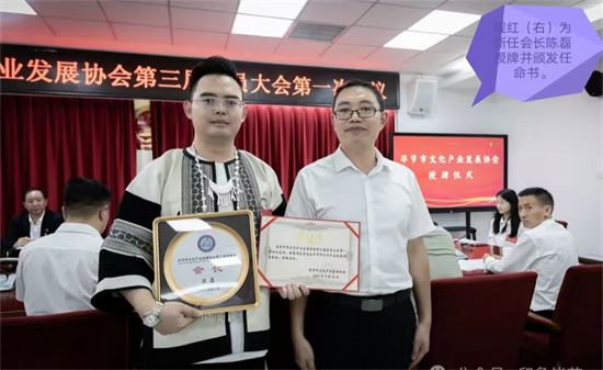 8月22日,畢節(jié)市文產(chǎn)協(xié)會三屆一次會議舉行,會上,貴州屋脊心文化發(fā)展傳播有限公司董事長陳磊繼續(xù)擔(dān)任會長,陳磊說,我深感榮幸,更覺使命光榮、責(zé)任千鈞,征程萬里風(fēng)正勁,重任千鈞再揚(yáng)帆。