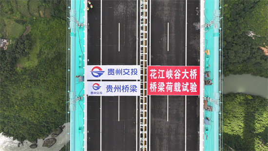 8月25日下午,由貴州交投集團(tuán)所屬橋梁集團(tuán)承建的花江峽谷大橋迎來(lái)靜載試驗(yàn)最后一個(gè)環(huán)節(jié)——96輛總載重3360噸的試驗(yàn)卡車緩緩駛上橋面,模擬大規(guī)模堵車時(shí),大橋各個(gè)關(guān)鍵部位控制截面承載后的一系列效應(yīng)。