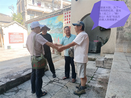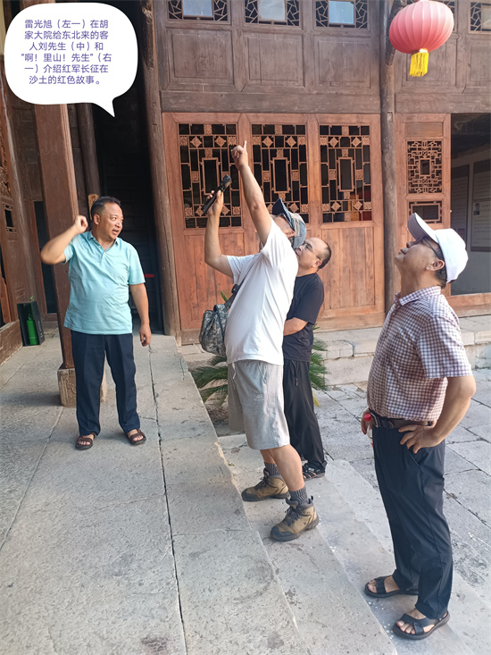 幾個人聊得正起勁,從胡家大院外面又進來兩人,一位來自東北,姓劉,是做紅色文化研究的,其抖音推介做得不錯,另一位是河南人,從事孩子的教育培訓。雷光旭又很認真地給他倆介紹起紅軍長征經過沙土的紅色故事。