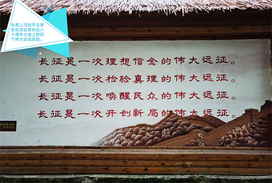 “??!里山!先生”告訴六大河欄目記者,他看著悅好山莊門(mén)口公路外墻上的這四句話,自己當(dāng)時(shí)突然就感覺(jué)耳目一新,有了一種無(wú)窮的力量,只是當(dāng)時(shí)的他,還不知道這四句話是習(xí)近平主席在紀(jì)念紅軍長(zhǎng)征80周年大會(huì)上說(shuō)的。