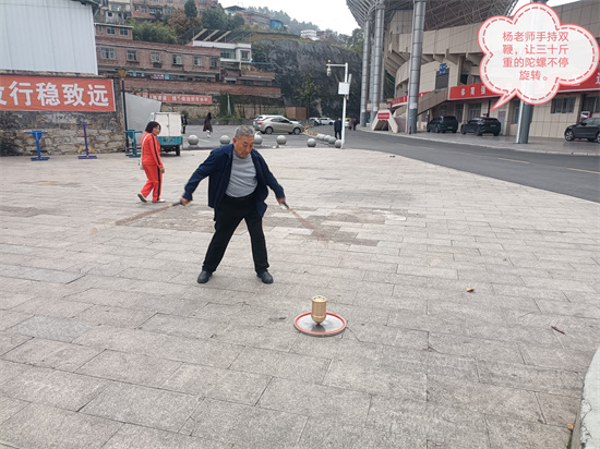 11月14日早晨,前往貴州畢節(jié)奧林匹克體育場鍛煉,突然遇到幾位打陀螺的老人玩得正起勁,目睹其中一個(gè)陀螺顯得特別大,于是就趕快駐足觀看起來。