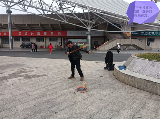 “我們這里講技藝是陳老師最好,他力氣大,不用電鉆可以啟動我這三十斤的陀螺。講重量,我這個(gè)還不是最重的,最重的是宋老師那個(gè),有36.5斤,只是他今天提前走了……”楊老師這樣告訴六大河欄目記者。