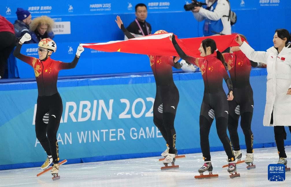 當(dāng)日,第九屆亞冬會(huì)短道速滑女子3000米接力A組決賽在哈爾濱舉行,中國隊(duì)奪得冠軍。