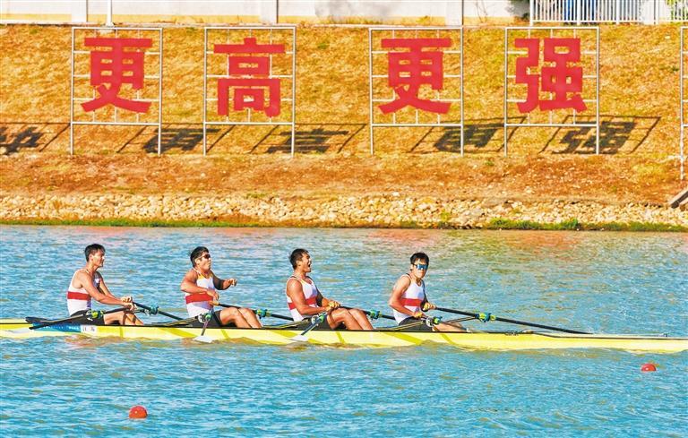 11月10日,十五運會賽艇項目決賽在廣東國際劃船中心展開角逐,江蘇隊在男子四人雙槳決賽中奪得冠軍,這是十五運會開幕式后產(chǎn)生的首枚金牌。