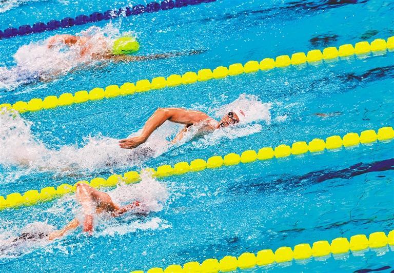 11月10日,十五運會男子4×100米自由泳接力決賽在深圳大運中心游泳館進行。