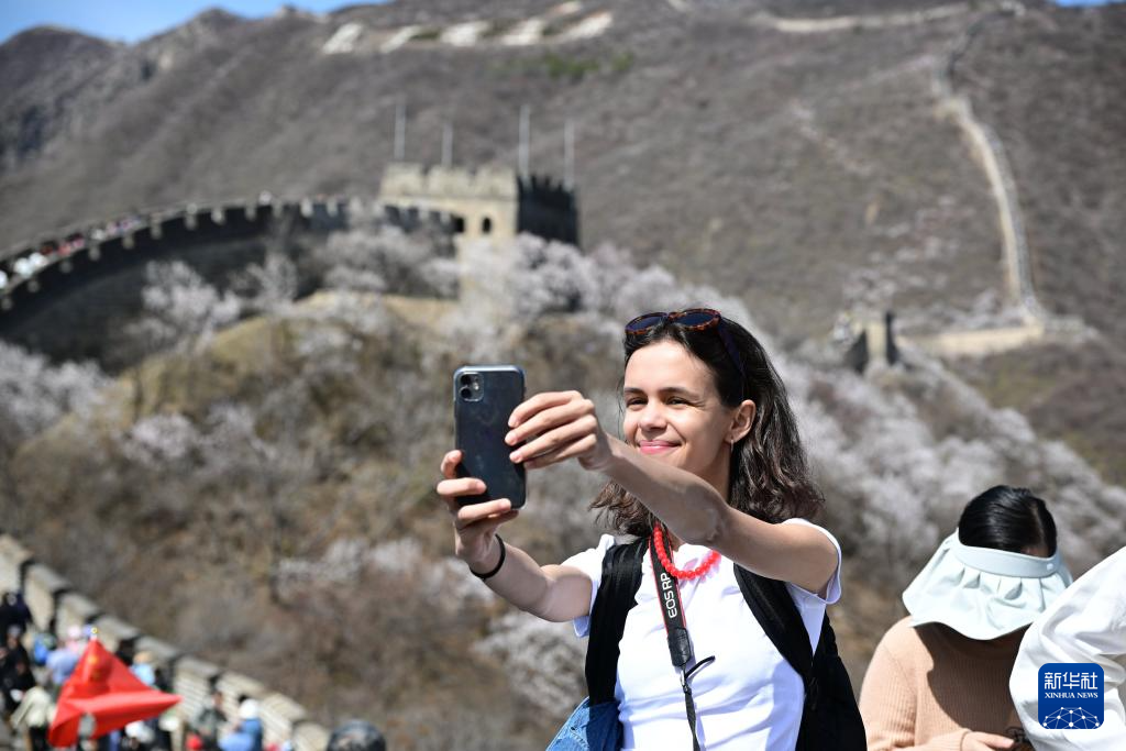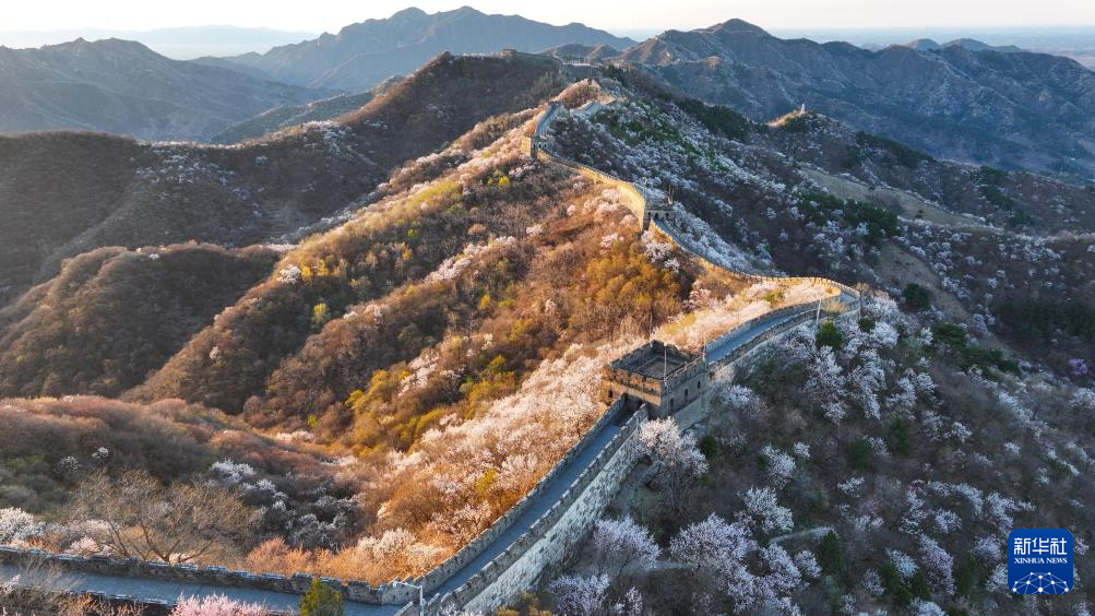 清明時節(jié),春和景明。北京懷柔群山間,慕田峪至箭扣一帶,綻放的山花隨春潮沿著長城奔涌?;ㄓ捌沛堕g,雄偉的古長城更添一抹生機與溫柔。